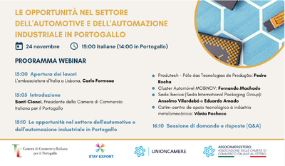 The seminar “Automazione Industriale e Industria 4.0: Le opportunità nel Settore Dell’Automotive e Dell’Automazione Industriale in Portogallo” organised by the Italian Luso Chanber of Commerce in collaboration with the Unioncamere under the Stay Export project.