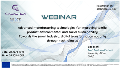 GALACTICA project Webinar on “Advanced manufacturing technologies for improving textile product environment and social sustainability” – April 20th