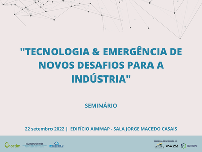 The seminar: Technology & Emergence of New Challenges for Industry, will take place on September 22 between 9:30h and 12h at AIMMAP Building (room Jorge Macedo Casais).