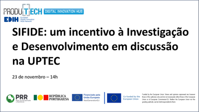 UPTEC - Science and Technology Park of the University of Porto, a partner of PRODUTECH DIH, is organising an information session on SIFIDE, a mechanism that aims to increase the competitiveness of companies by supporting their efforts in Research & Development through the deduction from corporate income tax of a percentage of their R&D expenses.