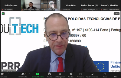 For more than an hour, José Ângelo Pinto, Coordinator of WP 1, presented this program that aims to strengthen the intelligence function at the service of the production technology sector and create basic conditions for the qualification of the production technology sector, promoting more resilience, growth and innovation.
