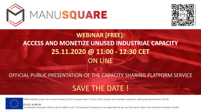 A plataforma MANU-SQUARE é um ecossistema e mercado eletrónico, agregando ferramentas e serviços, que permitirá o estabelecimento de negócios entre aqueles que procuram capacidades de produção específicas e aqueles que têm as suas disponíveis.
