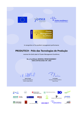 O PRODUTECH – Pólo das Tecnologias de Produção foi recentemente reconhecido como “Gold Label of the European Cluster Excellence”, uma certificação atribuída pelo ESCA – The European Secretariat for Cluster Analysis.